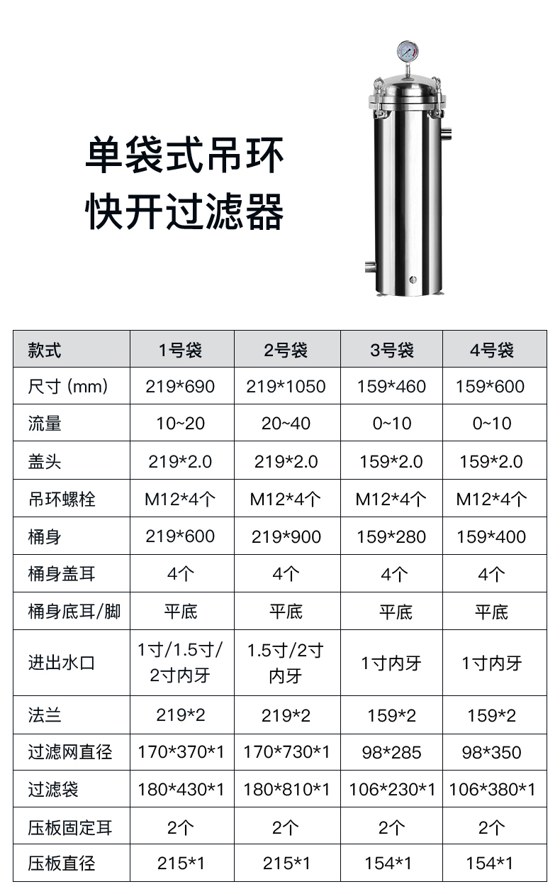 的腐蚀余度与较高的可靠性。选用01#、02#尺寸规格的过滤袋或过滤网,滤袋更换非常便捷。